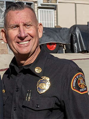 Assistant Fire Chief Drew Smith is a 37-year veteran of the fire service and currently serves as the Assistant Fire Chief for Division VII of the Los Angeles County Fire Department. He provides strategic command and oversight for a large and complex geographic area on the west side of Los Angeles County, including the Santa Monica Mountains, Universal Studios, West Hollywood, and Marina Del Rey, encompassing both city jurisdictions and unincorporated communities.